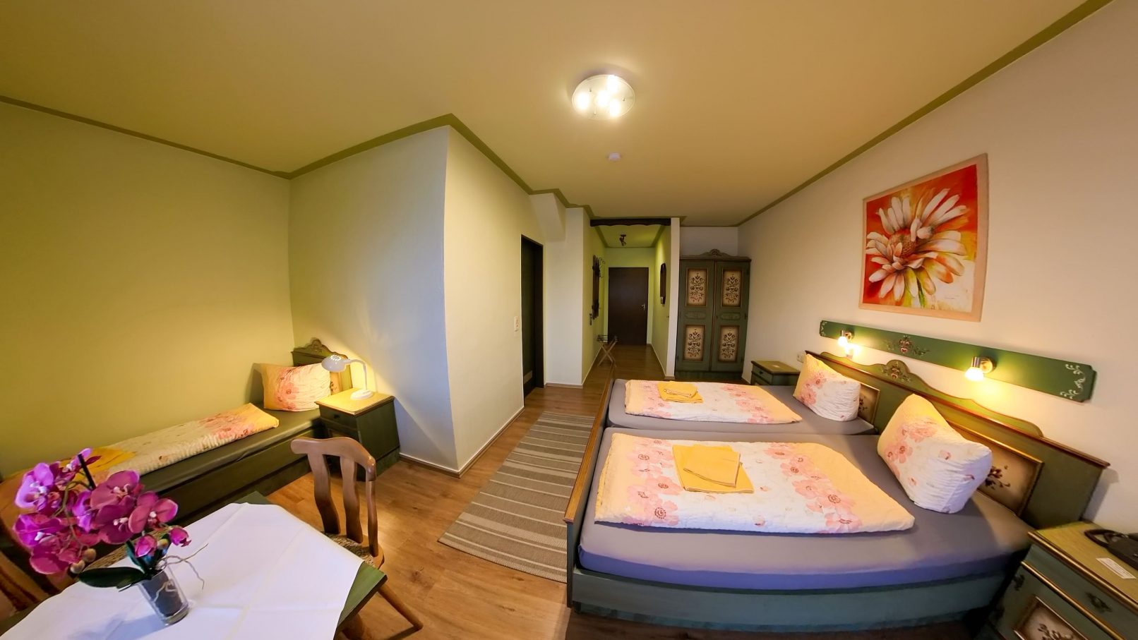 Willkommen in unseren gemütlichen Familienzimmern, der perfekten Wahl für Ihren Familienurlaub im malerischen Taunus. Diese geräumigen Zimmer bieten mit einem komfortablen Doppelbett und zusätzlichen Einzelbetten genügend Platz für bis zu drei Personen (oder 4 Personen), ideal für Familien oder kleine Gruppen.
