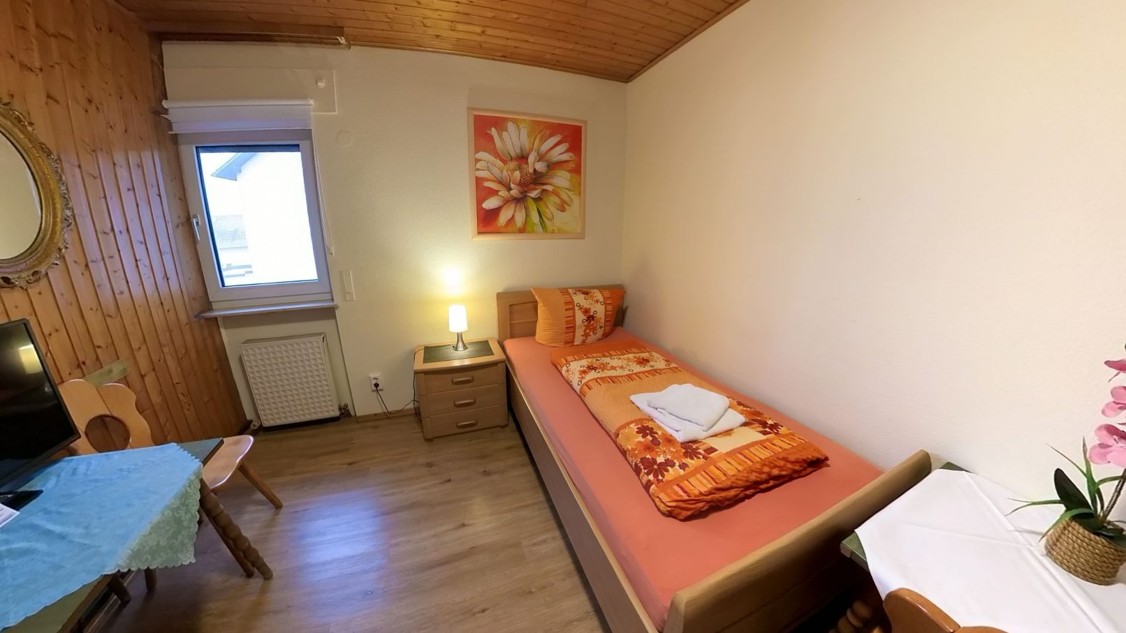 Ein ruhiger Ort zum Entspannen: Unsere Einzelzimmer bieten einen ruhigen, gemütlichen Ort, an den Sie sich nach einem ereignisreichen Tag zurückziehen können. Die Fenster öffnen sich zur ruhigen Umgebung des Taunus, wo die Stille und die frische Luft zur Erholung einladen.